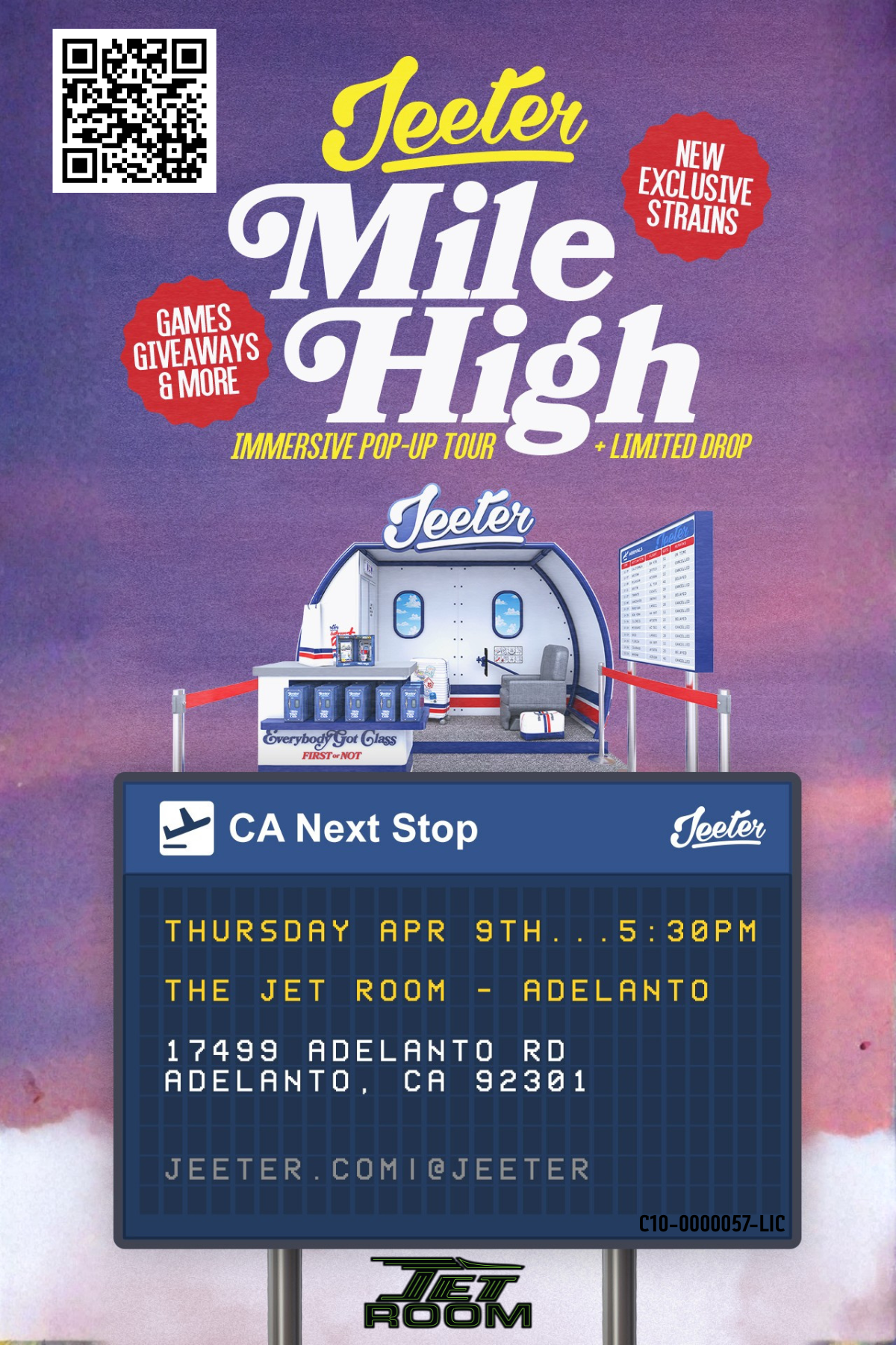 Get ready for a first-class experience! On Thursday, April 9th at 5:30 PM, the Jeeter Mile High tour makes its next stop right here at the Jet Room Adelanto.