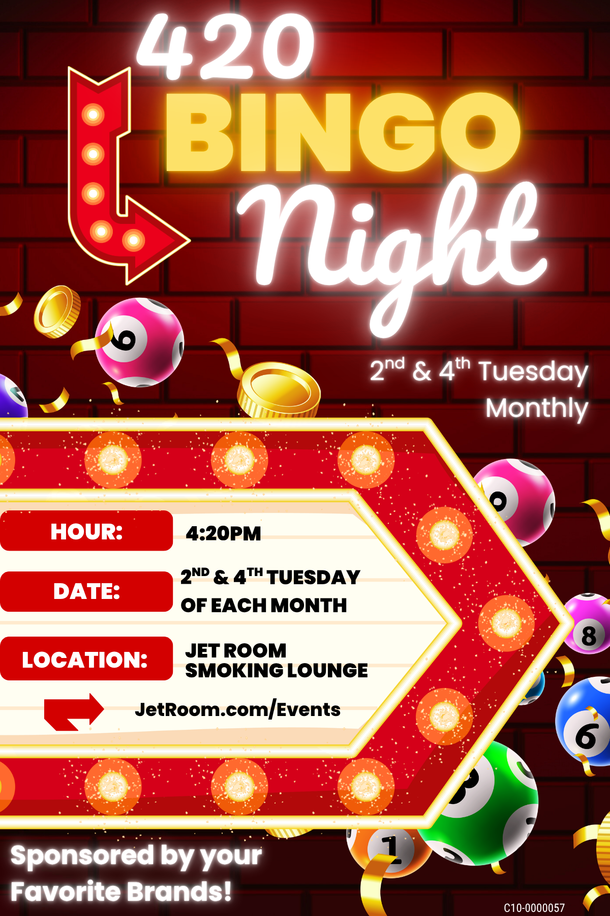 Get ready to shout "BINGO" with a buzz! Join us every 2nd and 4th Tuesday at 4:20 PM in the Jet Room Smoking Lounge for the most electrified game night in the High Desert.