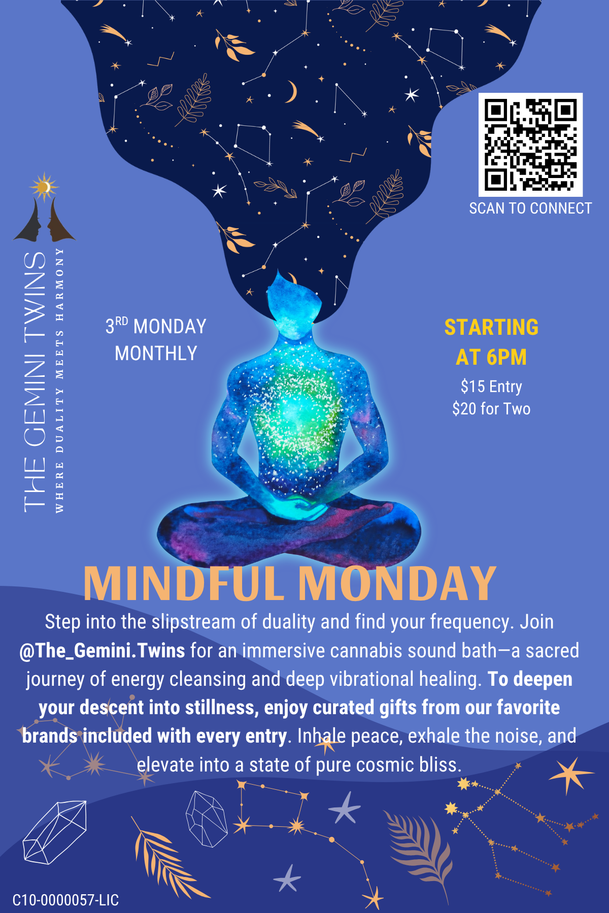 Join us every third Monday at 6:00 PM for a journey where quality meets harmony. Hosted by The Gemini Twins, Mindful Monday is an immersive cannabis sound bath designed for deep vibrational healing and energy cleansing. It’s the perfect space to inhale peace, exhale the noise, and align your spirit with curated gifts from our favorite brands included with every entry.